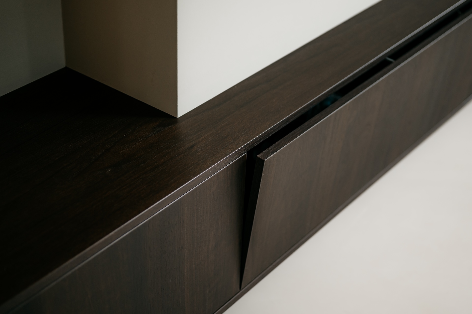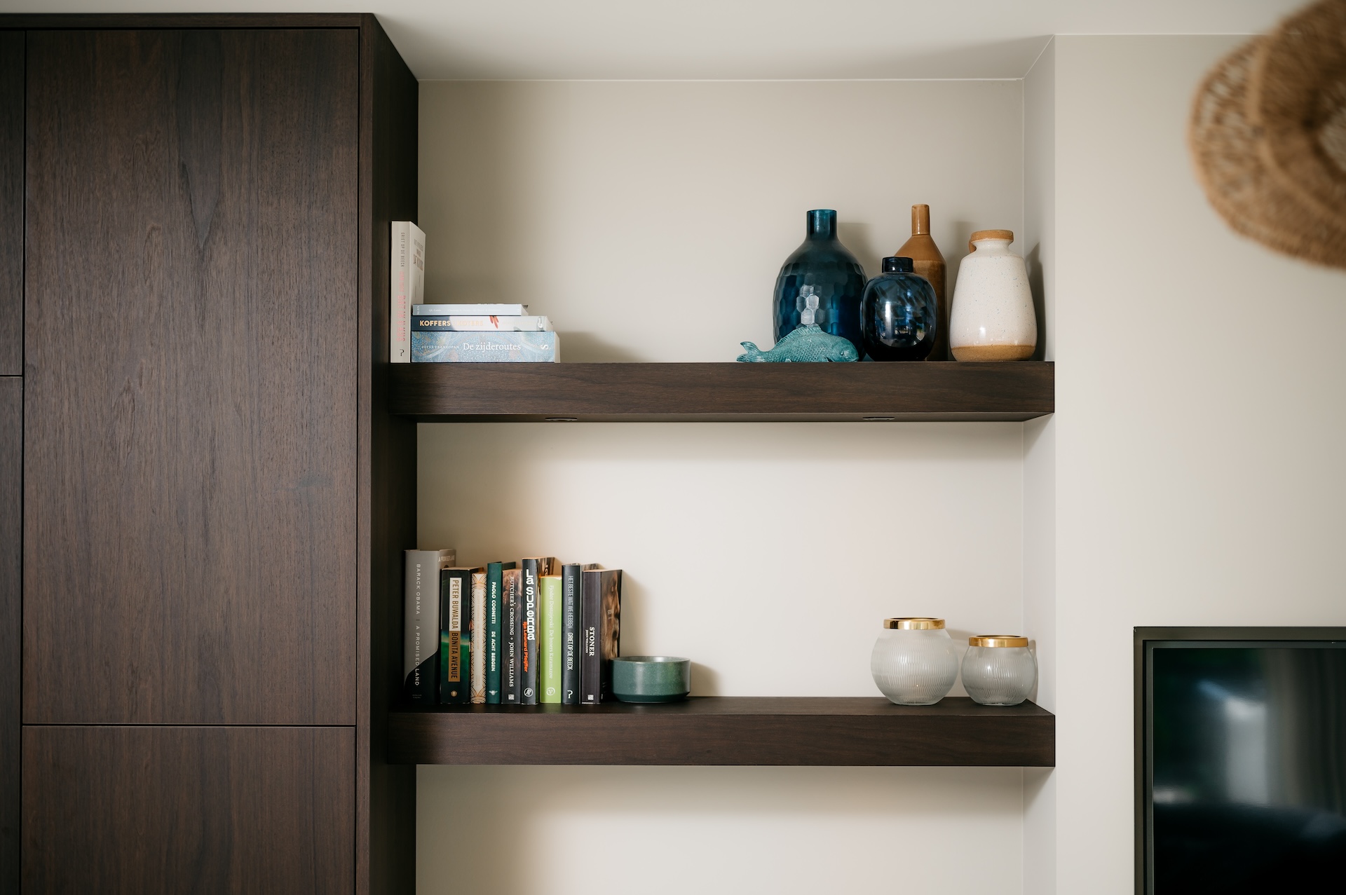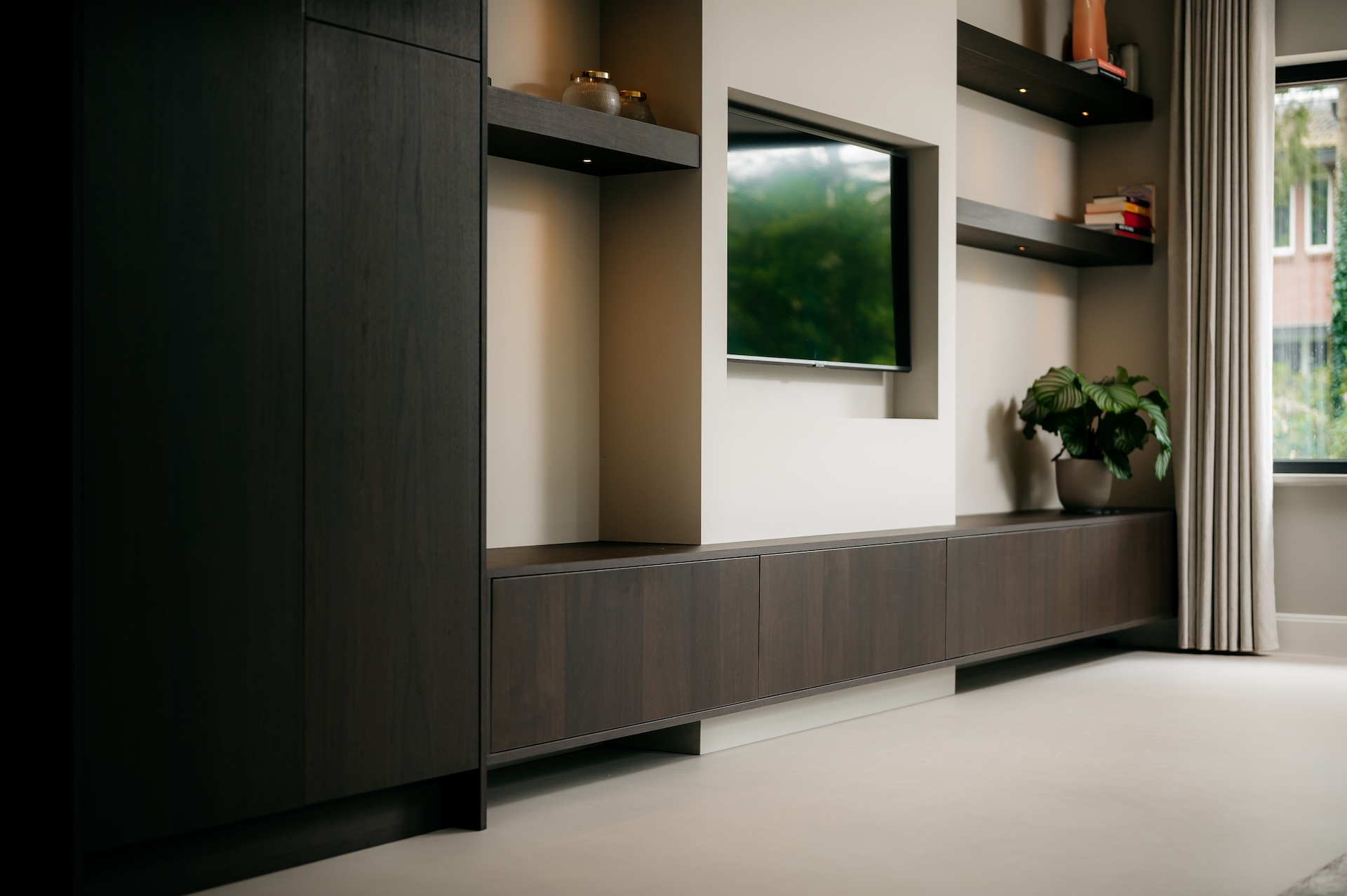 In deze woning in Wageningen realiseerde Tornebold Interieurs een moderne maatwerk kastenwand die naadloos opgaat in het interieur. Het donkere hout, de strakke belijning en het ingetogen ontwerp vormen samen een rustig geheel.